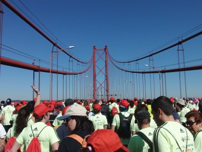 It is the only day in the year that the 25th April bridge is closed so the people can walk on it, even if you do not want to pay to participate, the bridge stays closed for three hours after the departure of the first half marathonists. More than 45.000 people cross the bridge on that day on their on foot.