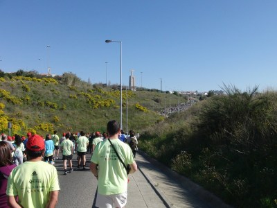 The half marathonists start their race at 10:30, ten minutes later the mini-marathonists (7,2 km) can go, and after all the participants that paid are already in the race, there is place for people who did not pay but still want to cross the bridge and walk to the famous neighbourhood of Belém.
